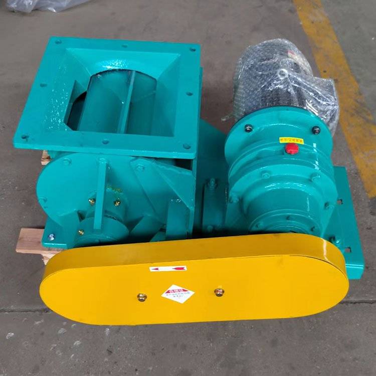 星型卸料器的结构通常是由带有数片叶片的转子叶轮、壳体、密封件及减速器、电动机等组成。当上部料仓的物料靠自重落下充填在叶片之间的空隙中,随叶片的旋转而上部卸出。因此,星型卸料器可以定量而连续地卸料。